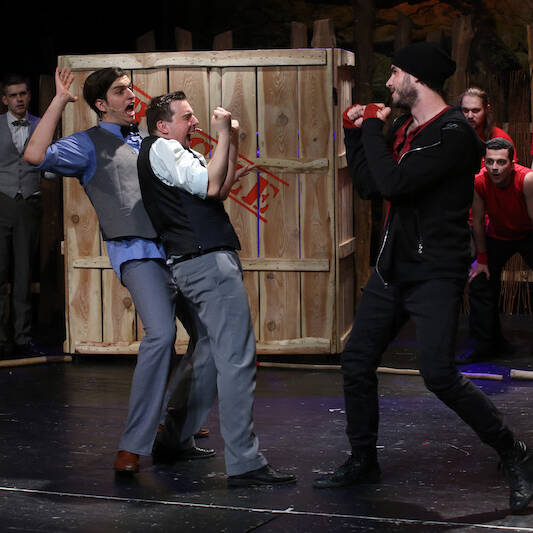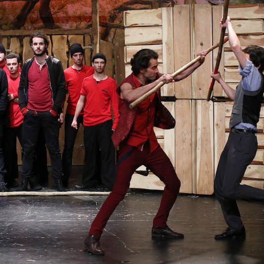 A klasszikus alapmű ezúttal nem gyerekek, hanem ifjú emberek konfliktusaként szólal meg. A drámai helyzetek így még keményebbek, melyeket tovább fokoznak a mai hangzású zenék és dalszövegek. Az előadásban döntő szerepet játszik a tárgyi világ akusztikus megszólaltatása, a színészek zenei-ritmikai kreativitása, a fiatalság ereje, humora, az eredeti mű katartikus üzenete.